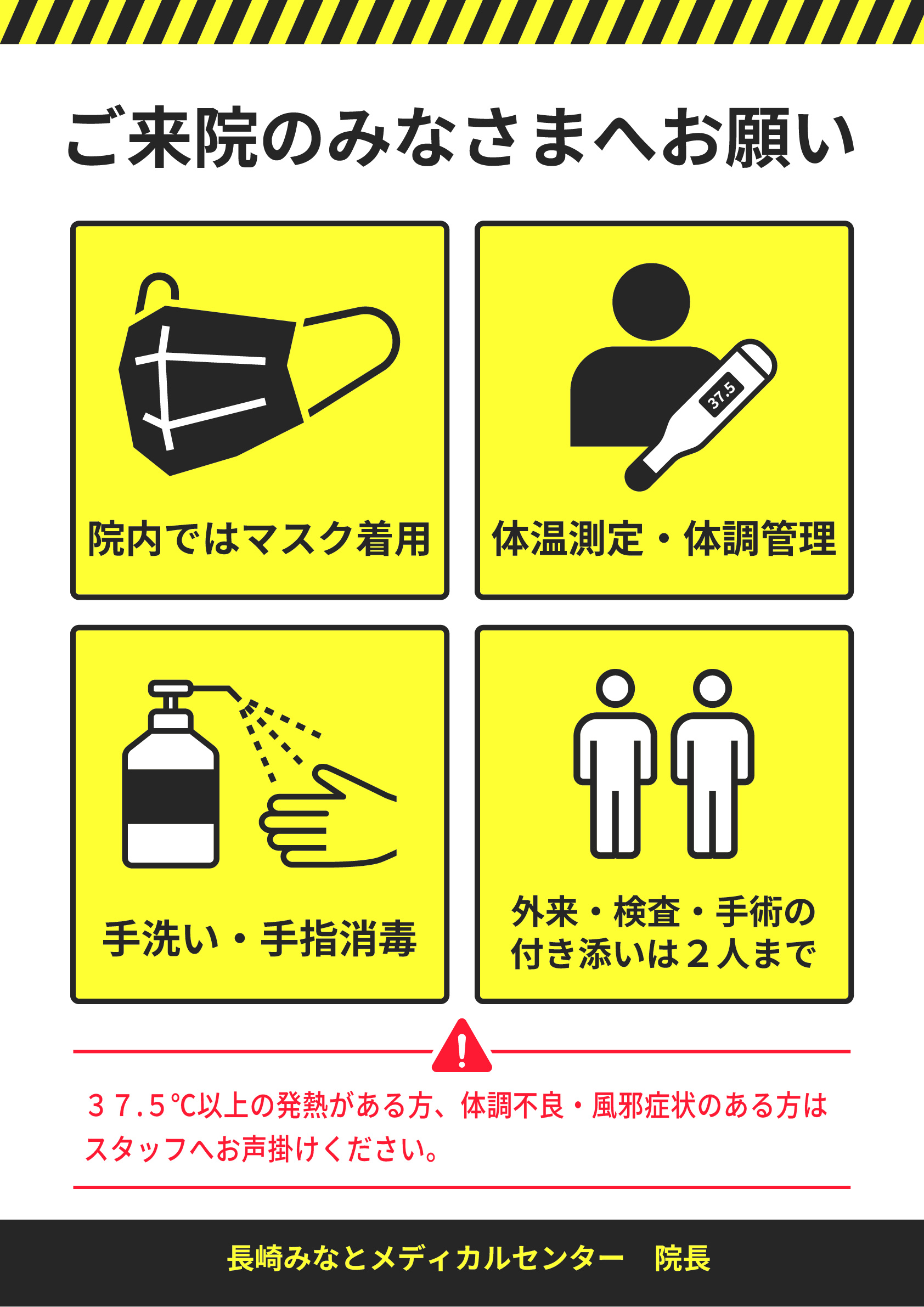 感染流行状況に応じて、来院される方、ご面会の方を対象に体温や健康状態を確認させて頂いております。